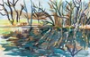 A season for forgetting, 11” x 17”, marbled and painted acrylic on collaged silk and cotton, 2026